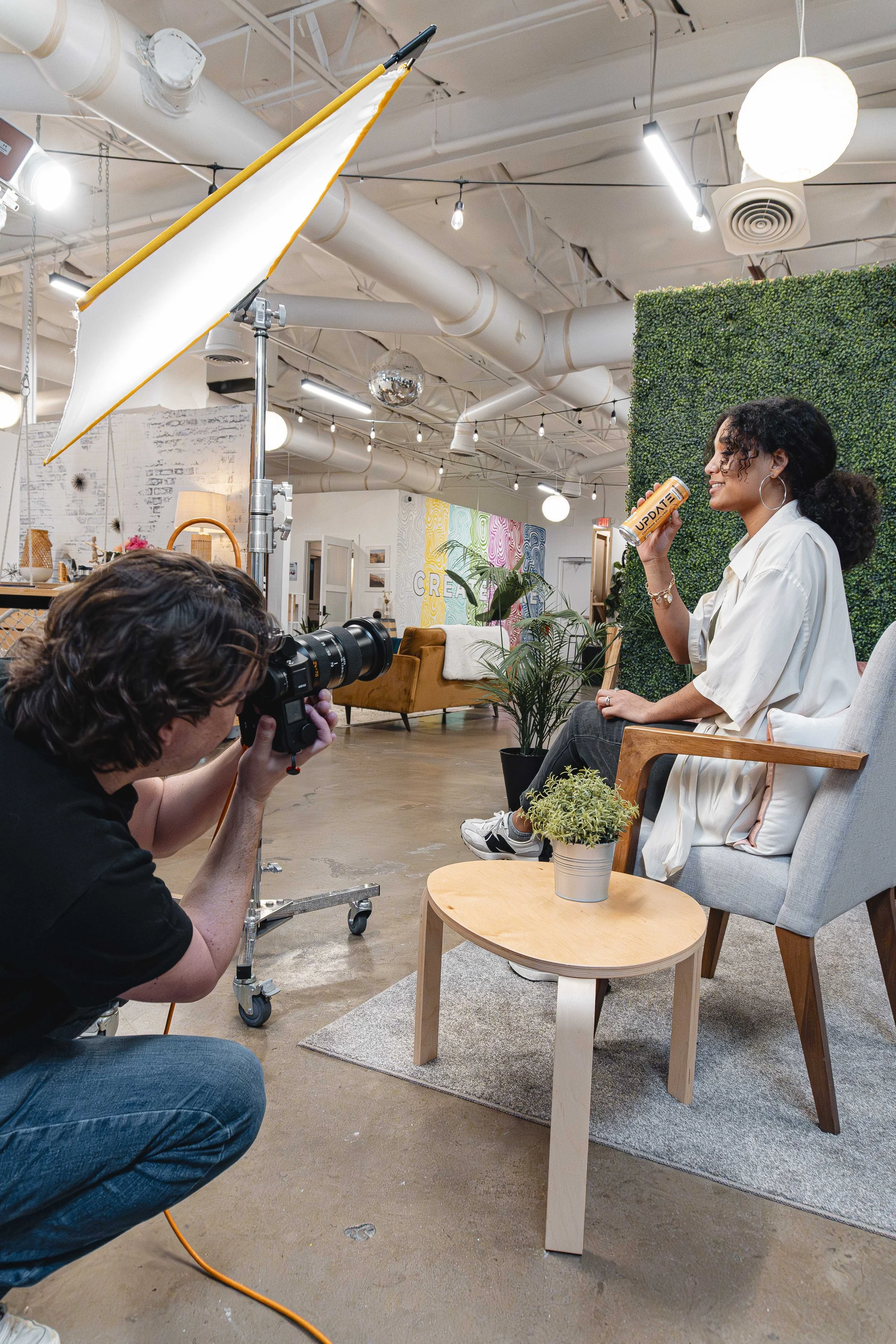 **PLEASE NOTE: This area is NOT sound controlled and is a common area during regular business hours. While you will have exclusive access to the area, there could be foot traffic around the perimeter of the studio. Please keep this in mind if you are planning to record audio. If audio recording is important we recommend booking this space outside of regular business hours or on weekends. We cannot guarantee a quiet environment free of noise.