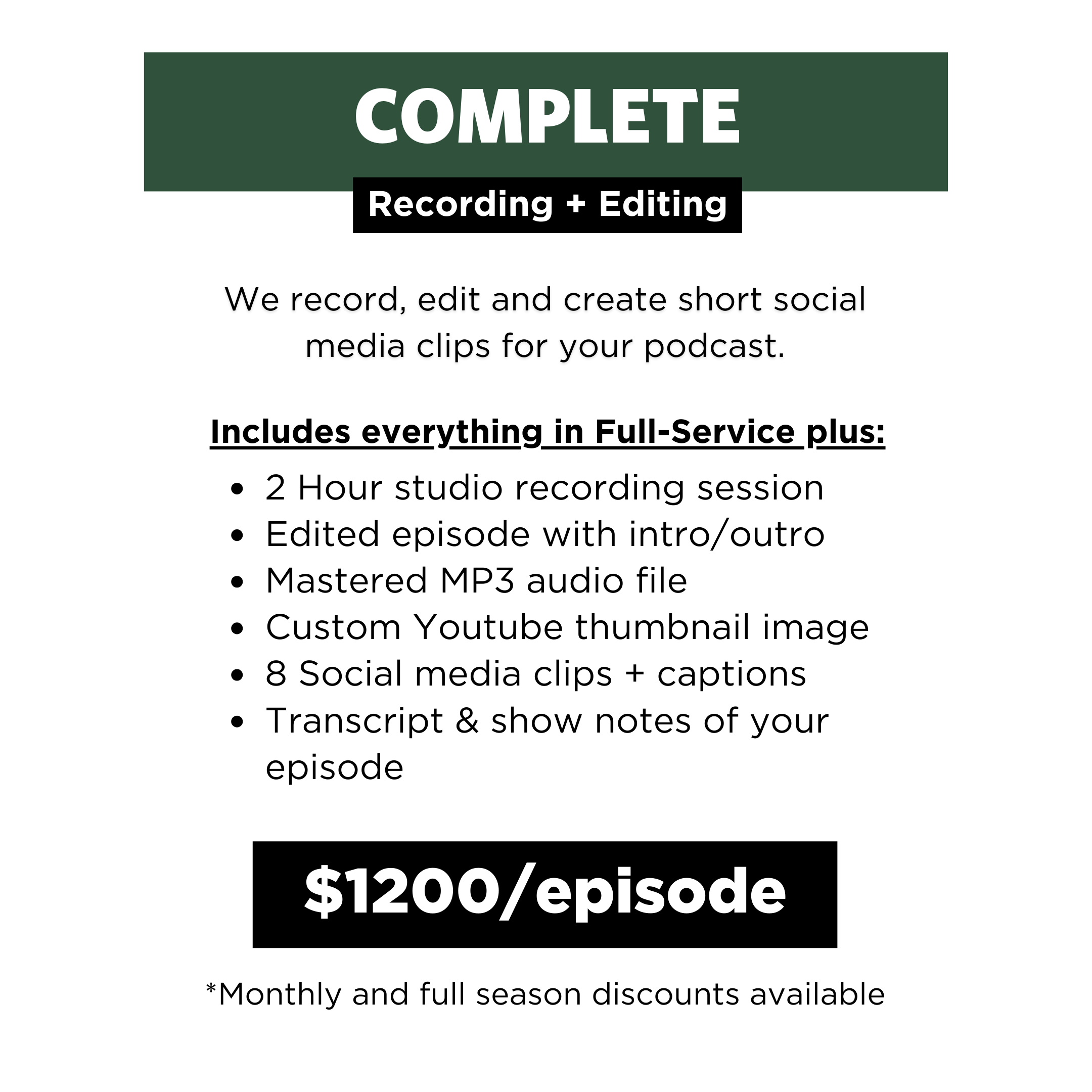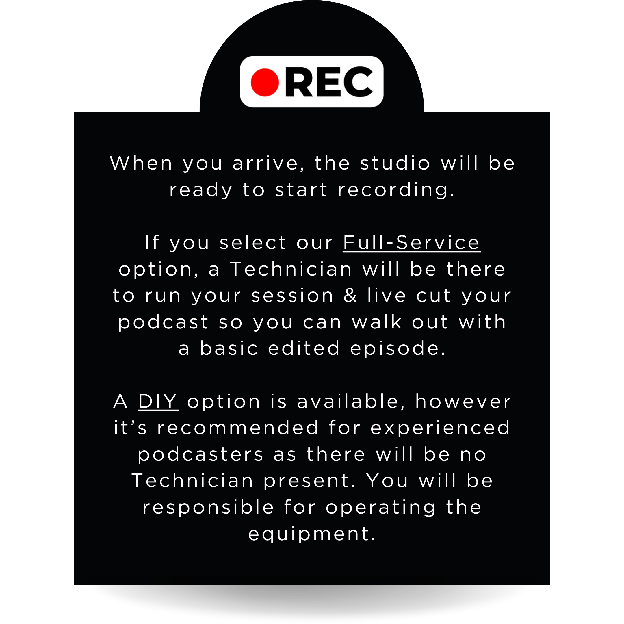 Includes space & equipment only **Recommended for experienced podcasters. Studio is not responsible for media delivery.